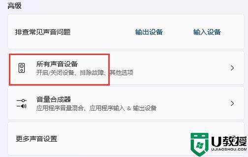 2、点击高级下的“所有声音设备”。