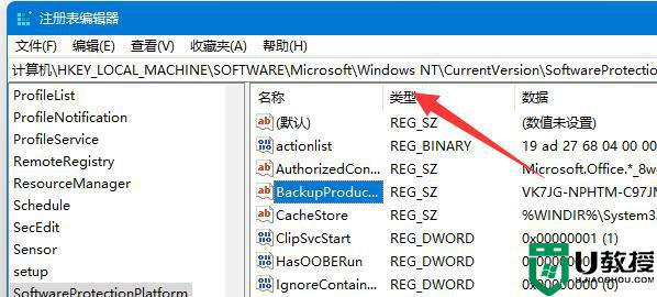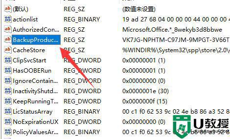 4、双击打开其中的“BackupProductKeyDefaul”选项。