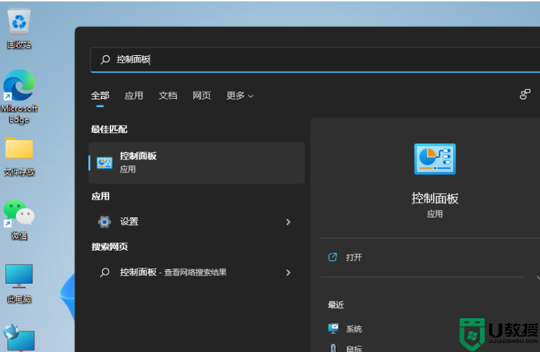 1、按【 Win + S 】组合键,或点击任务栏上开始图标旁边的【搜索图标】,在打开的Windows 搜索中,搜索框输入【控制面板】,然后点击打开系统给出的最佳匹配【控制面板应用】;