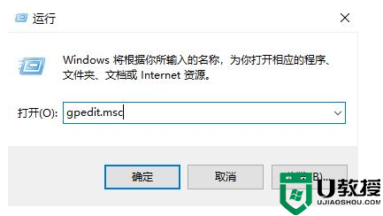 2、运行窗口,输入【gpedit.msc】命令,按【确定或回车】,可以打开本地组策略编辑器;