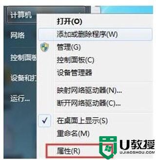 2、若还没有恢复则检查显示驱动是否正常,左键点击桌面左下角开始菜单,然后右键“计算机”选择“属性”;