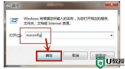 2、在运行窗口中输入“msconfig”并点击确定进入;
