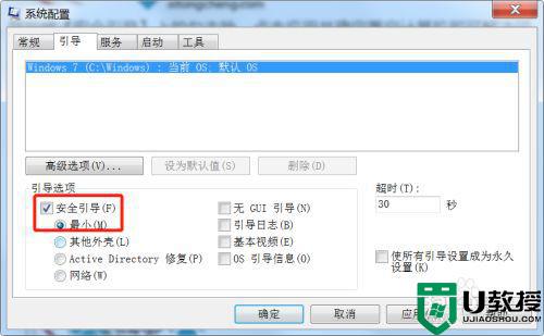 4、找到引导选项,将【安全引导】上的勾去除,点击应用并确定。