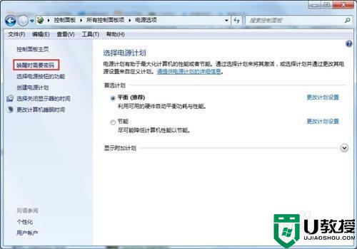 5、在左侧找到唤醒时需要密码,点击进入下一个选项;