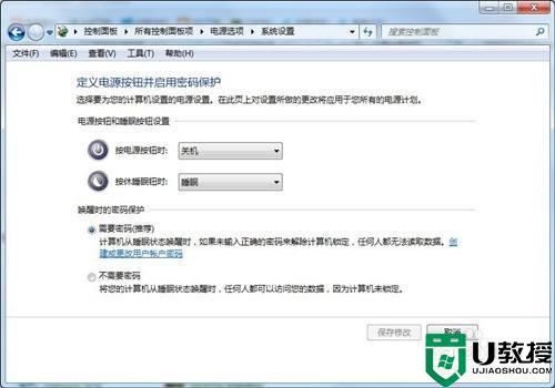 6、选择唤醒时需要密码,最后点击保存修改即可。