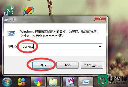 2、在运行窗口输入“psr.exe”,点击确定,此时会弹出“问题步骤记录器”窗口,这就是录屏器了。