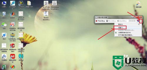 3、点击“问题步骤记录器”窗口右上角的三角按钮,点击设置,会弹出“问题步骤记录器设置”窗口,这里可以保存录制的文件的路径。