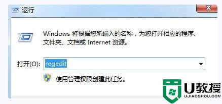 1.直接用快捷键win+R键打开win7运行对话框,在运行窗口输入栏输入命令regedit直接返回车键。弹出打开注册表编辑设置窗口。