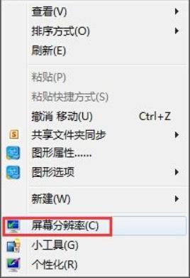 1、在电脑桌面空白鼠标右键,选择“屏幕分辨率”。