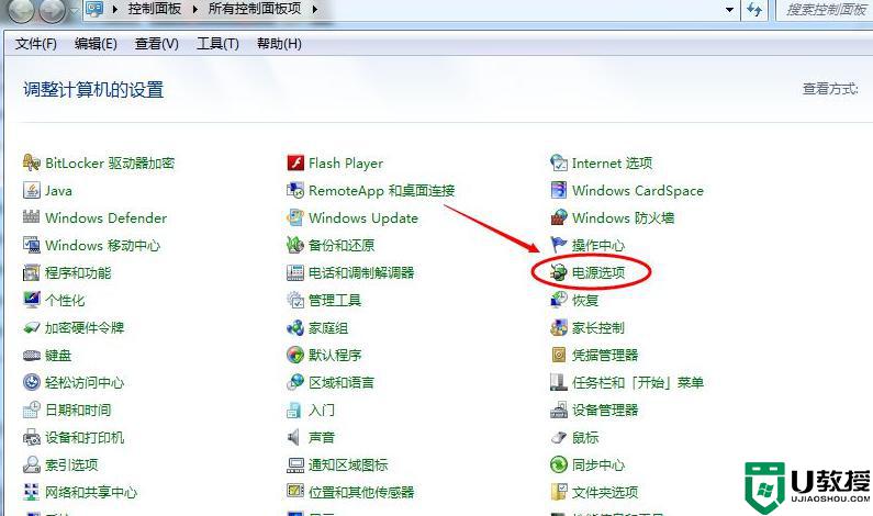 2、点击后,在打开的控制面板中找到“电源选项”,然后点击电源选项。