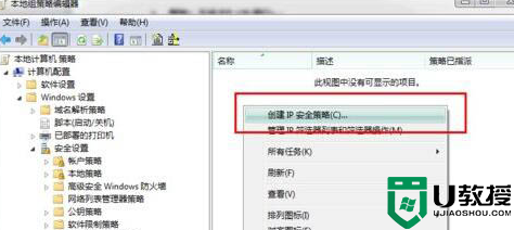 1、在“开始”菜单选择“运行”,输入“gpedit.msc”后回车,打开本地组策略编辑器。依次展开“计算机配置---windows设置---安全设置---ip安全策略,在 本地计算机”