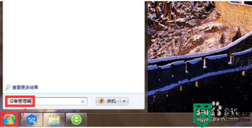 1、首先打开电脑,摄像头在设备管理器中可以找到,点击win7左下角的开始程序按钮,在输入栏输入设备管理器。