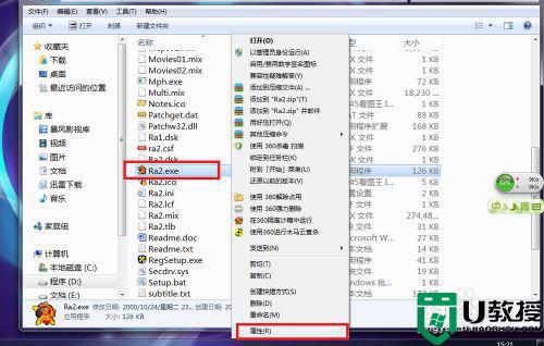 2、找到“Ra2.exe”右击选择“属性”。