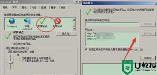 2、随后在属性界面中,点击“安全”下的“可信站点”,开始添加需要的网站。
