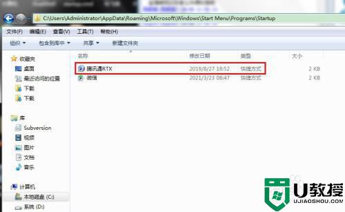 3、在打开的启动项文件夹中,选择要移除的启动项,如下图所示。