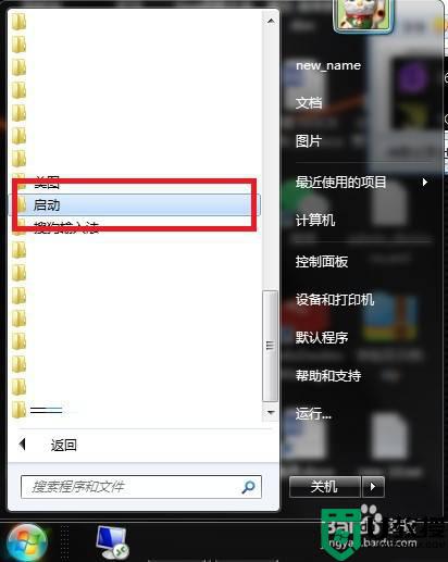 2、进入所有程序菜单列表,选择并打开【启动】文件夹,如下图所示。
