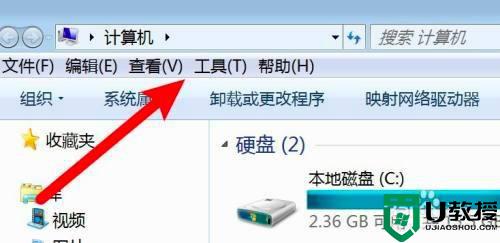 1、打开计算机,点击工具菜单。