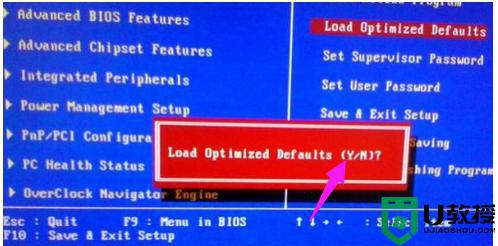 4.我们需要选择“Load Optimized Defaults”选项:用方向键选中该选项,点击回车确定即可,这时系统会出现提示,点Y键,再次回车确定,最后别忘了保存之前的设置:点“Save&exit step”选项或者按F10进行保存设置即可。