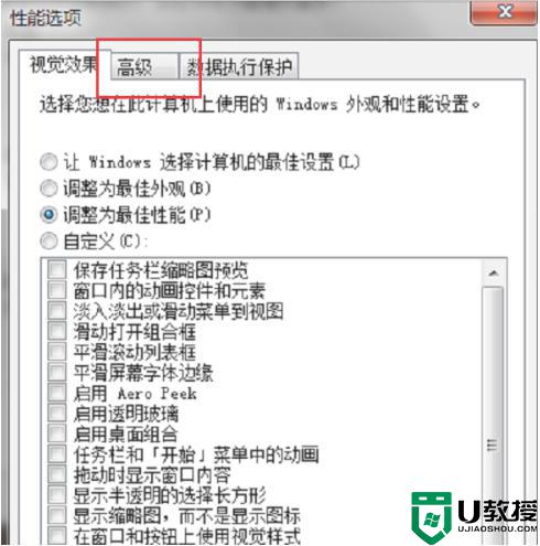 3、进去性能选项之后,点击高级,如下图所示:
