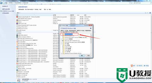 3、点击打开或关闭Windows功能。