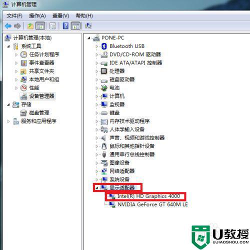 3、在打开的设备管理器列表页面中,找到“显示适配器”选项,并双击集成显卡设备,一般情况下为Intel显卡设备。