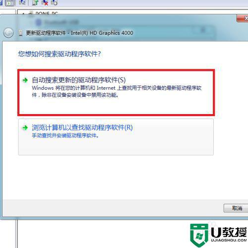 6、接下来,在弹出的页面中选择“自动搜索更新的驱动程序软件”选项,Windows将自动搜索并更新该驱动程序软件,如有可用驱动程序软件的话。
