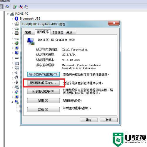 5、在接下来打开的属性页面中,点击“更新驱动程序”按钮。