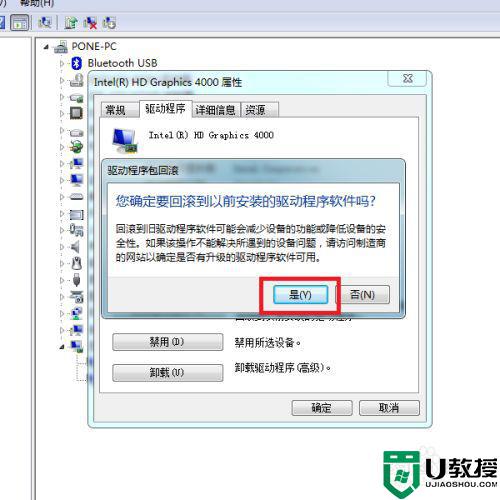 8、接下来,在弹出的对话框中,点击“是”按钮,即可回滚显卡驱动程序至之前的版本,那么此问题就不再复现了。