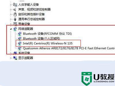 3、如下图所示:点击网络适配器展开底下根目录,双击Inter(R)Centrino(R)Wireless-N135选项进入。