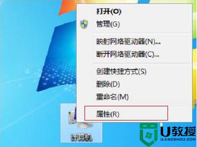 1、在win7操作系统桌面上,鼠标右键计算机图标选择属性选项进入。