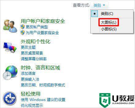 2、把“查看方式”改为“大图标”或者“小图标”。