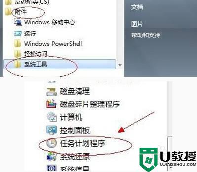 1、我们依次打开【所有程序】--【附件】,然后在附件中的【系统工具】里找到【任务计划程序】后打开;