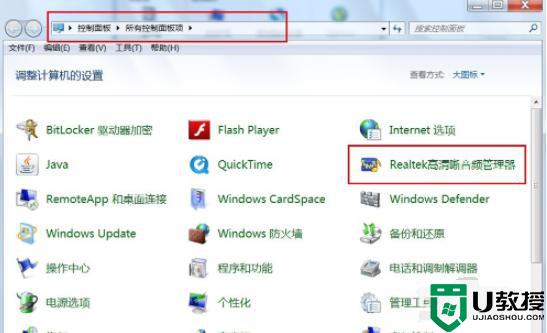 2、排除驱动问题后,依次打开win7系统的开始菜单--控制面板---Realtek高清晰音频管理器。