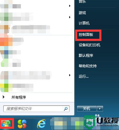 1打开开始菜单,点击控制面板。
