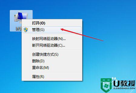 1、进入windows桌面后,在桌面图标上找到并右键单击“计算机”。