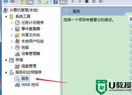 3、在计算机管理窗口左侧点选“服务和应用程序”,然后点击“程序”。