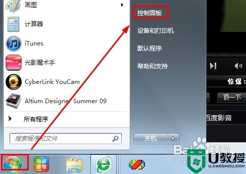 1、依次点击【开始】-【控制面板】,打开控制面板对话框。