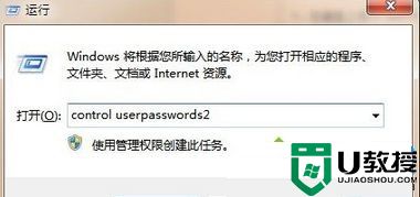 1、在键盘上按下“Win+R”组合键,输入“control userpasswords2”然后按下回车键,打开“用户账户”;