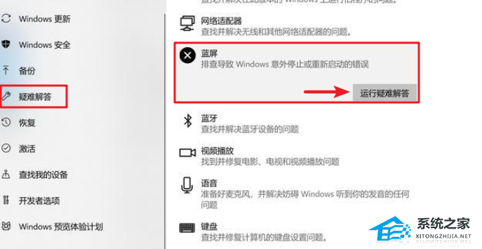 步骤2. 在左侧功能栏里找到【疑难解答】,之后在右侧点击【蓝屏】选项,并按下【运行疑难解答】按钮即可。待命令执行完成之后,重启计算机并查看问题是否已解决。
