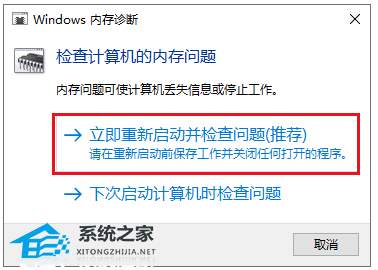 步骤2. 接下来,在Windows内存诊断界面里选择【立即重新启动并检查问题(推荐)】选项,耐心等待该诊断过程运行完成之后,重新启动计算机查看蓝屏问题是否已解决。