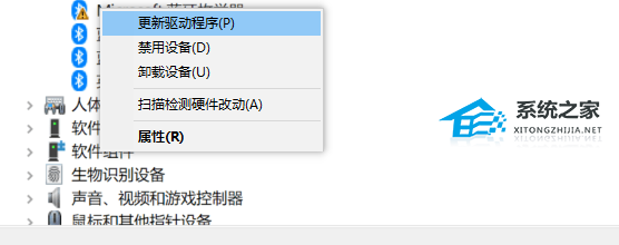 步骤2. 接下来,右键选中故障的设备(通常故障的设备会出现一个黄色的感叹号符号),并选择【更新驱动程序】选项。