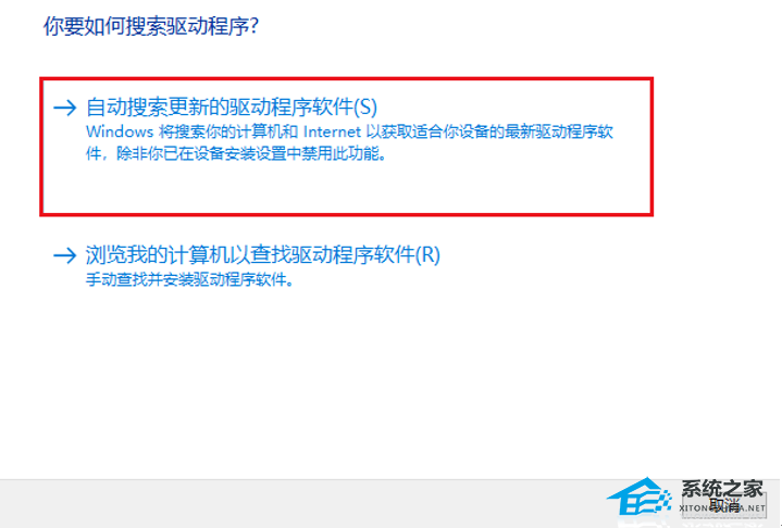 步骤3. 接下来选择【自动搜索更新的驱动程序软件】选项,之后按照指示依次操作即可完成对有故障的设备驱动程序进行更新。待命令执行完成之后,重启计算机并查看问题是否已解决。