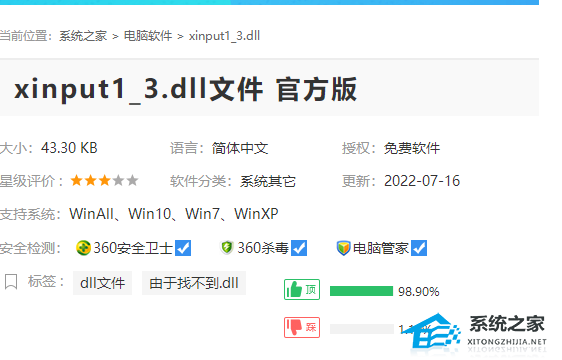 以上就是系统之家小编为你带来的关于“Win10系统xinput1_3.dll丢失怎么办?”的全部内容了,希望可以解决你的问题,感谢您的阅读,更多精彩内容请关注系统之家官网。