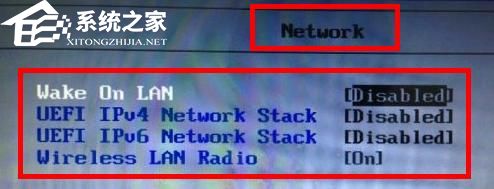 开机按F2键进入BIOS,按BIOS——config——network顺序找到如图Wake On LAN及下面三项都Disable掉(禁用此功能)。
