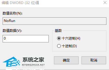 5. 然后输入名字为NoRun,再双击它,修改NoRun的数值数据为0即可。