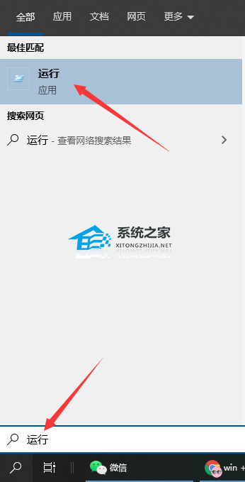 或者直接通过win10系统的小娜搜索框,输入运行即可找到打开。