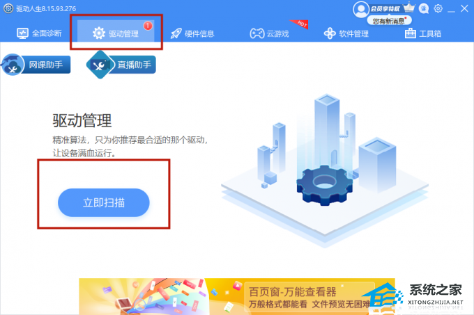 驱动人生8软件的【驱动管理】处点击【立即扫描】,“驱动人生8”将对你的电脑进行扫描检测,显示出驱动正常或异常的状态。