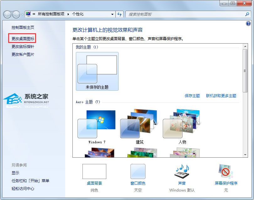 2、点击更改桌面图标也能来到桌面图标设置里,方法就和第一种一样。