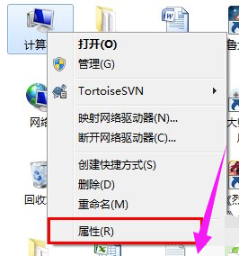 鼠标右键点击计算机,弹出窗口,找到属性