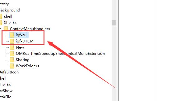 2.然后在注册表中依次展开文件夹:【HKEY_CLASSES_ROOTDirectoryackgroundshellexContextMenuHandlersigfxDTCM】。